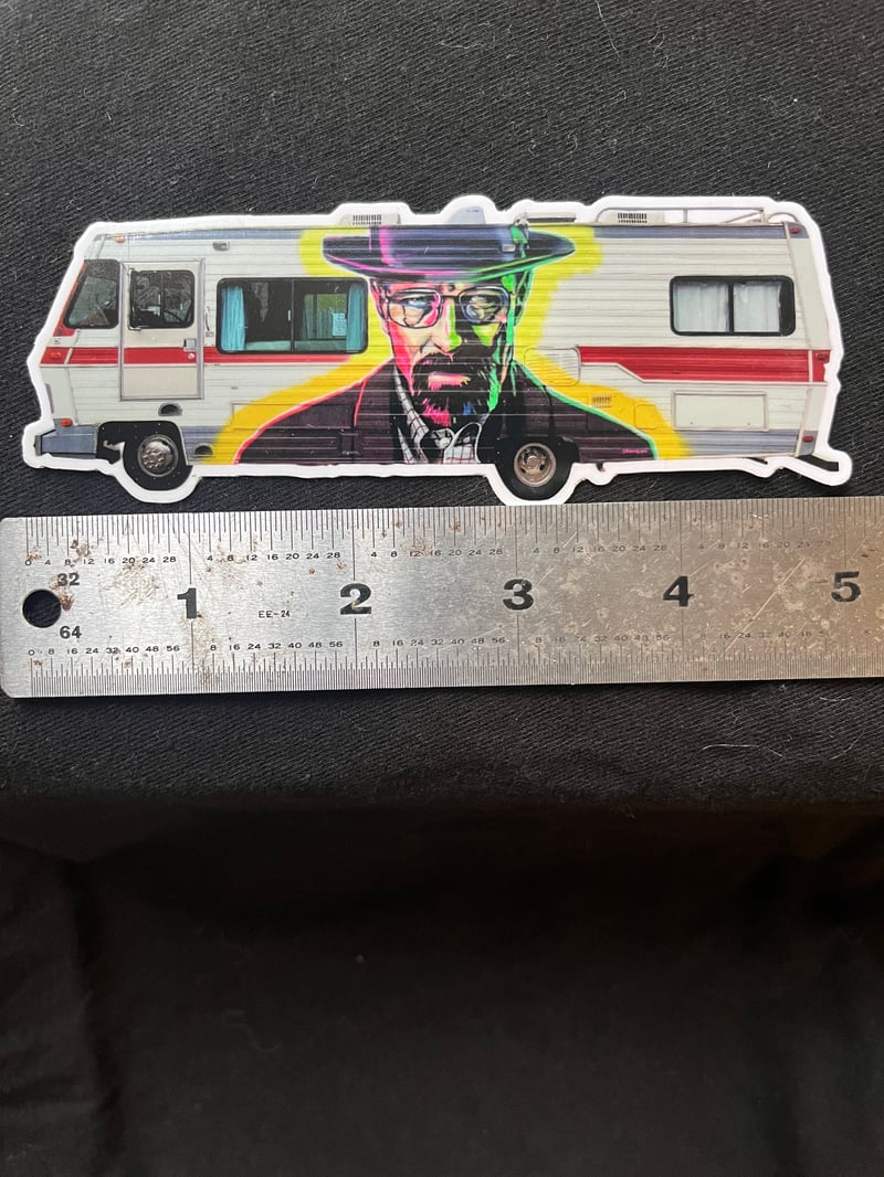 This 5-inch vinyl sticker features my original portrait of Heisenberg from Breaking Bad, painted on the side of the show’s iconic RV. It’s a tribute to the grit, chaos, and genius that defined the series — a mix of street art attitude and pop culture nostalgia. Perfect for fans who appreciate bold design and a little bit of danger in their art.
